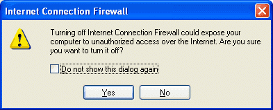 WARNING #2: If the Internet Connection Firewall is