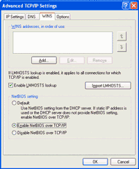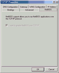 To enable NetBIOS Over TCP/IP on Windows XP and Windows 2000: