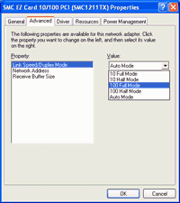 appropriate setting depends on the particular network card.