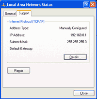 connection, and click Status | Support | Details. For example,