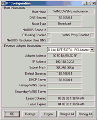 More Info. Here’s the winipcfg view for an ICS client running